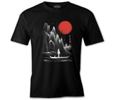 Man on the Boat in Japanese Landscape Black Men's Tshirt
