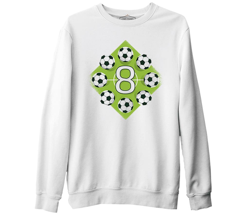 8 Years Old Birthday with Soccer Balls on the Field Beyaz Erkek Kalın Sweatshirt