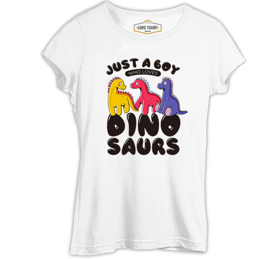 A Boy Who Loves Dinosaurs Beyaz Kadın Tshirt