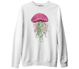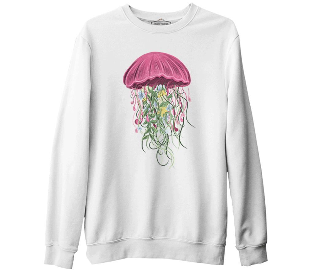 A Jellyfish with Floral Plant Tentacles Beyaz Erkek Kalın Sweatshirt