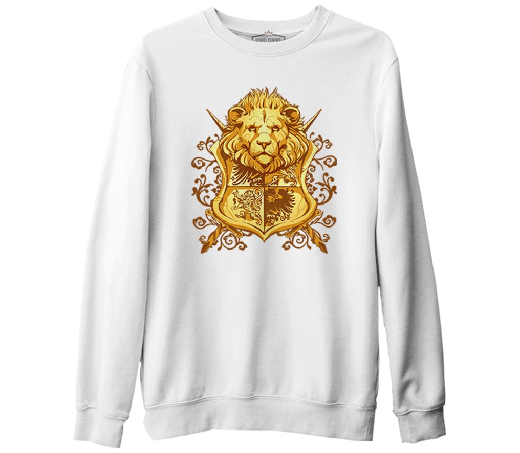 A Lion Head in Heraldic Style Beyaz Erkek Kalın Sweatshirt