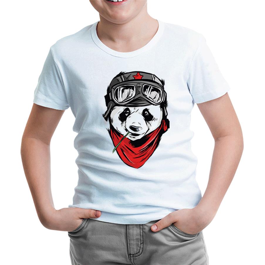 A Panda with a Bamboo in the Mouth Beyaz Çocuk Tshirt