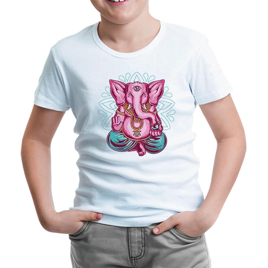 A Pink Elephant Meditating in a Yoga Pose Beyaz Çocuk Tshirt