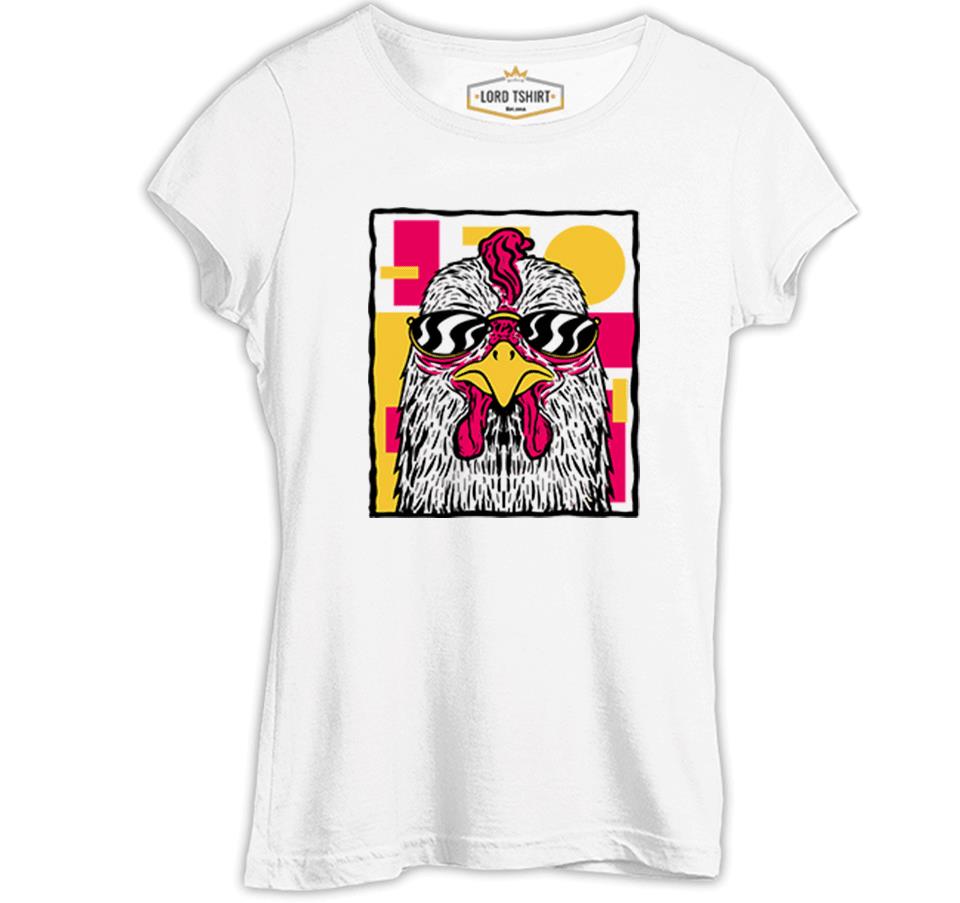 A Rooster Wearing Sunglasses Beyaz Kadın Tshirt