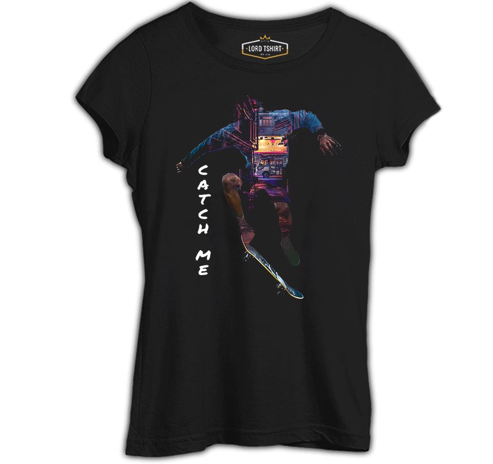 A skater in a City Siyah Kadın Tshirt