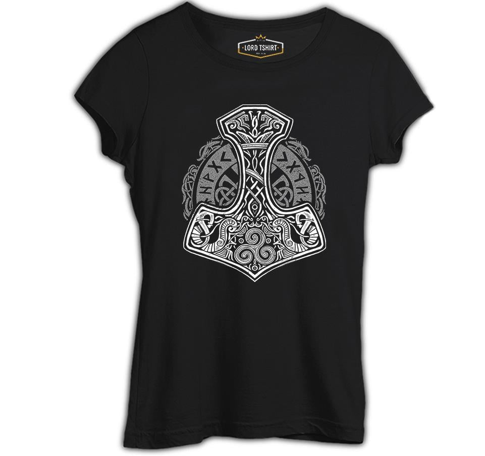 A Viking Hammer in Tribal Style Siyah Kadın Tshirt