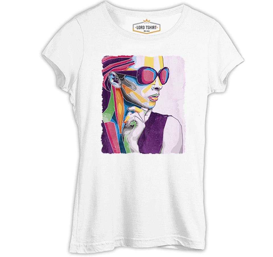 A Woman Silhouette Made out of Shapes Beyaz Kadın Tshirt