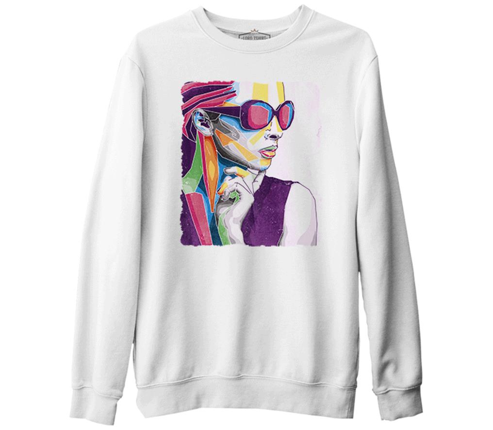 A Woman Silhouette Made out of Shapes Beyaz Erkek Kalın Sweatshirt