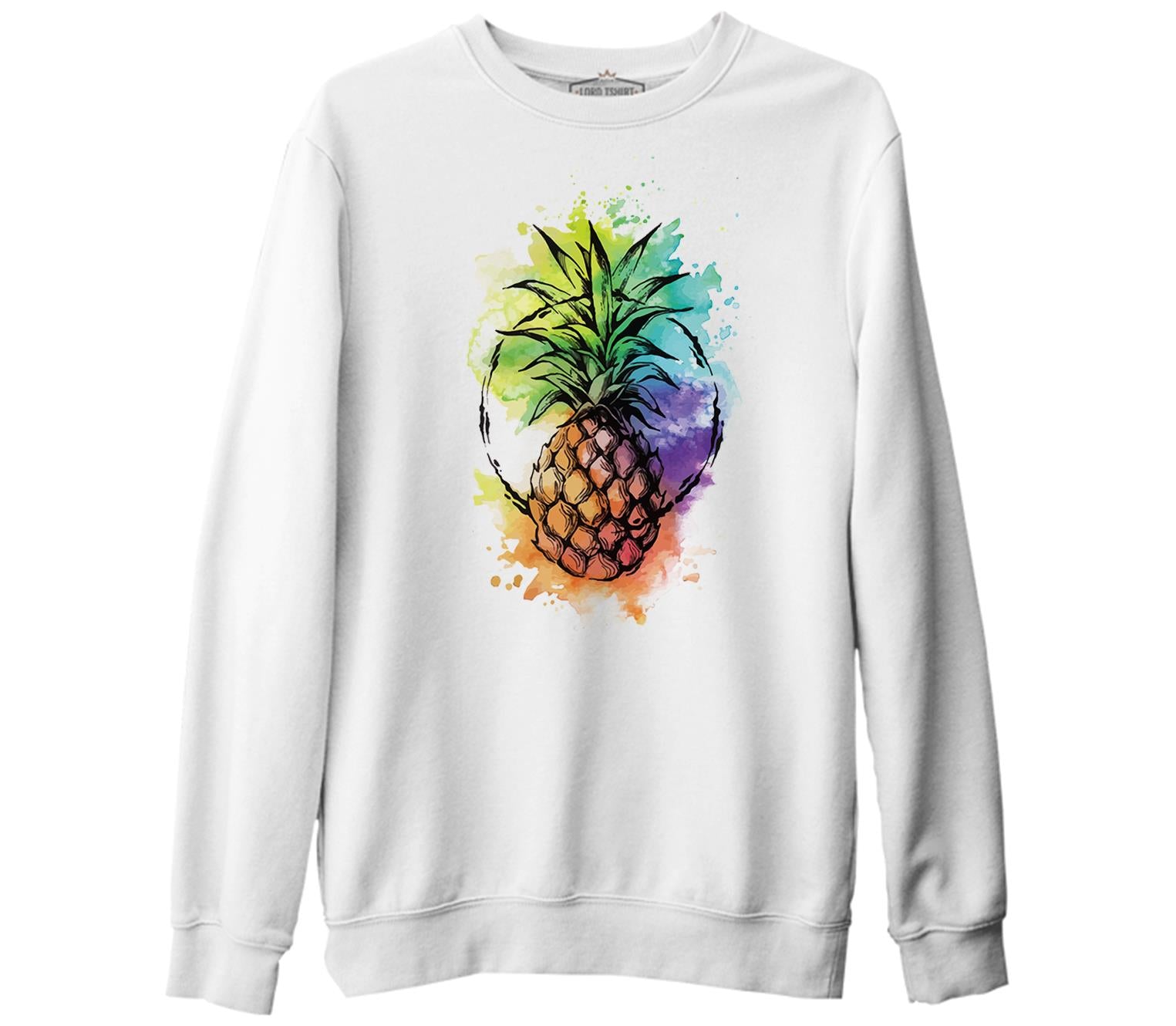 Ananas Suluboya Beyaz Kalın Sweatshirt