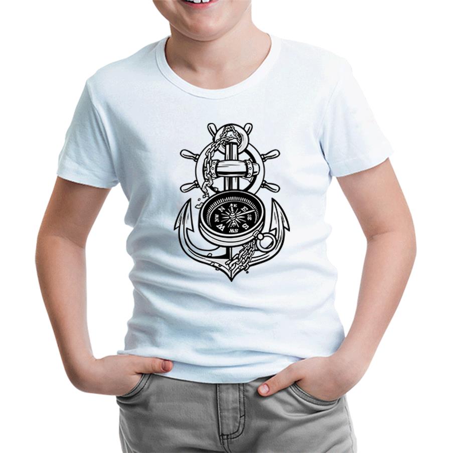 Anchor Compass Ship Helm Beyaz Çocuk Tshirt