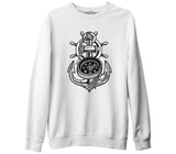 Anchor Compass Ship Helm Beyaz Erkek Kalın Sweatshirt