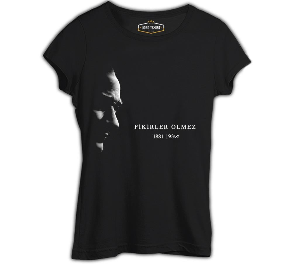 Atatürk - Fikirler Ölmez Siyah Kadın Tshirt
