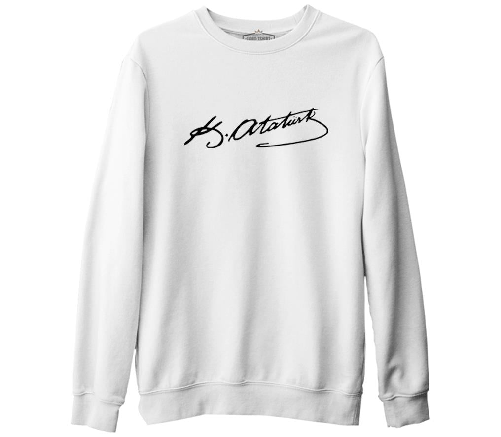 Atatürk İmza Beyaz Kalın Sweatshirt