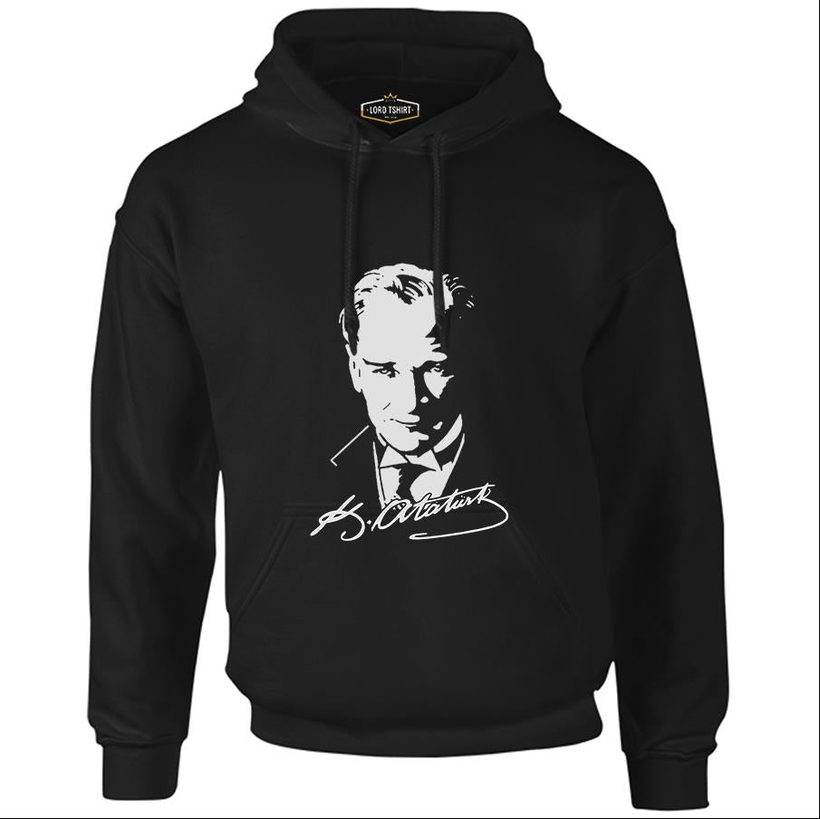 Atatürk - Portre I Siyah Erkek Fermuarsız Kapşonlu