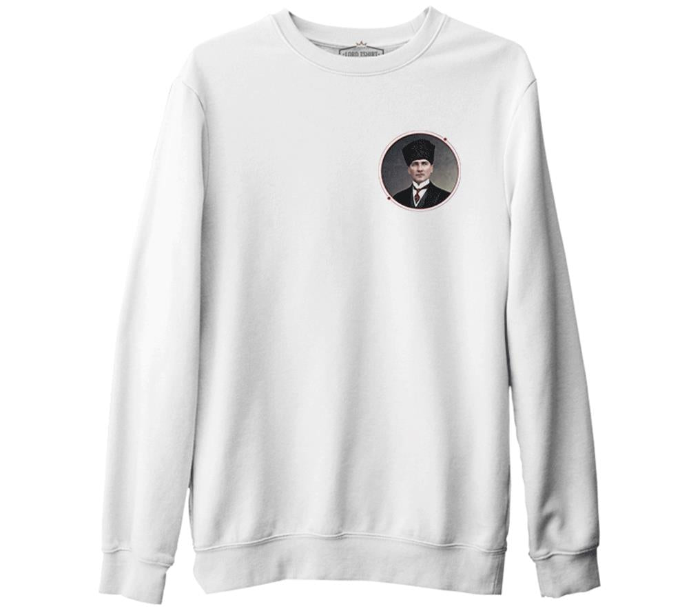 Atatürk - Portre Logo Beyaz Erkek Kalın Sweatshirt