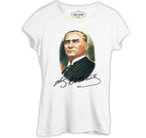 Atatürk Ve İmza Beyaz Kadın Tshirt