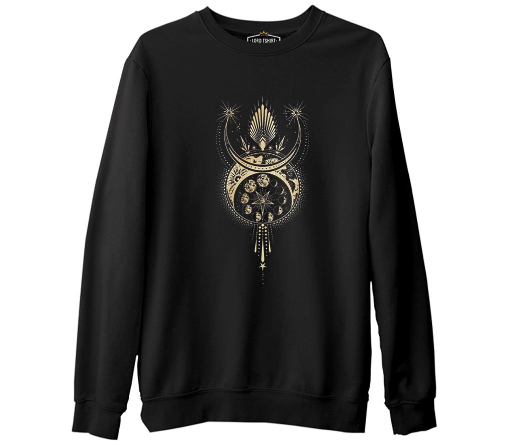 Ay Tacı Siyah Erkek Kalın Sweatshirt