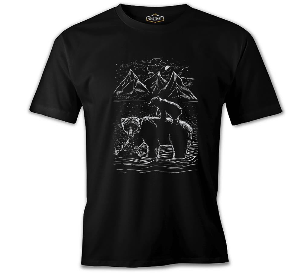 Baby and Parent Bear in the Lake Siyah Erkek Tshirt