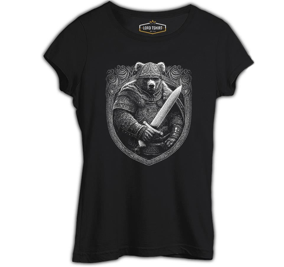Bear Dressed as a Viking with a Sword Siyah Kadın Tshirt
