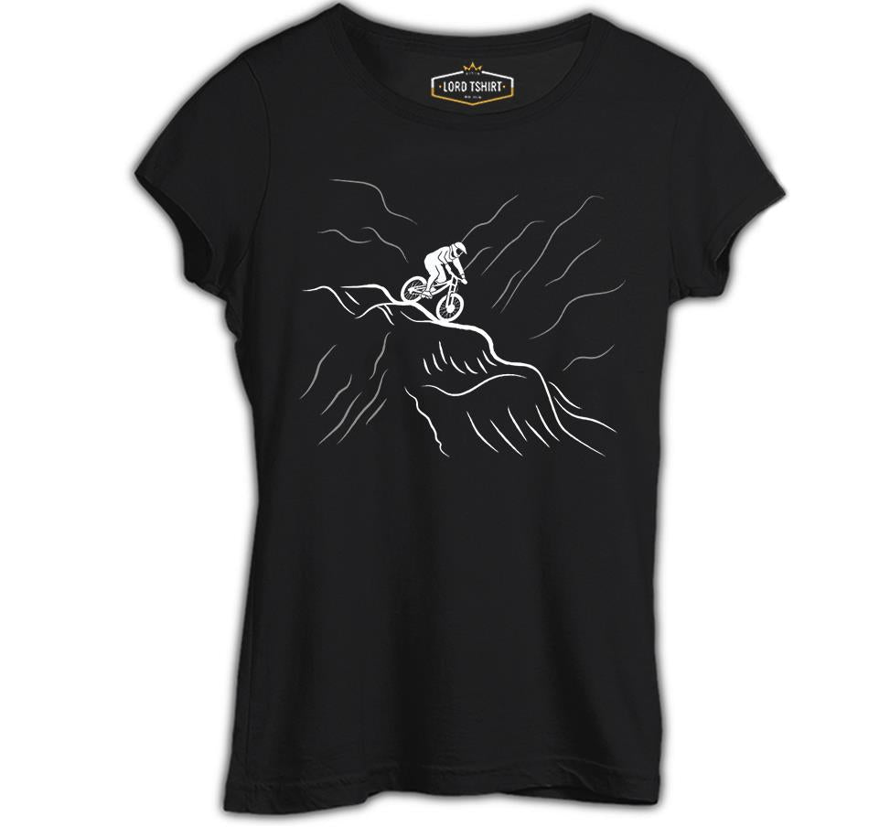 Biker on the Mountain Siyah Kadın Tshirt