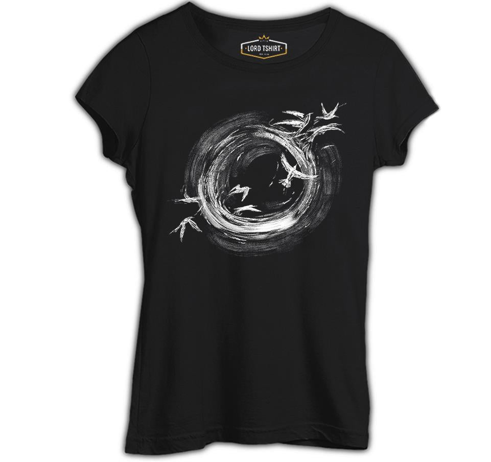 Black Hole Birds Flying Around Siyah Kadın Tshirt