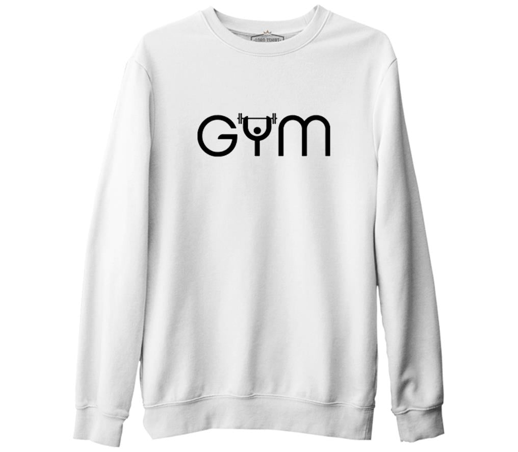 Bodybuilding - GYM with a Bar Beyaz Erkek Kalın Sweatshirt