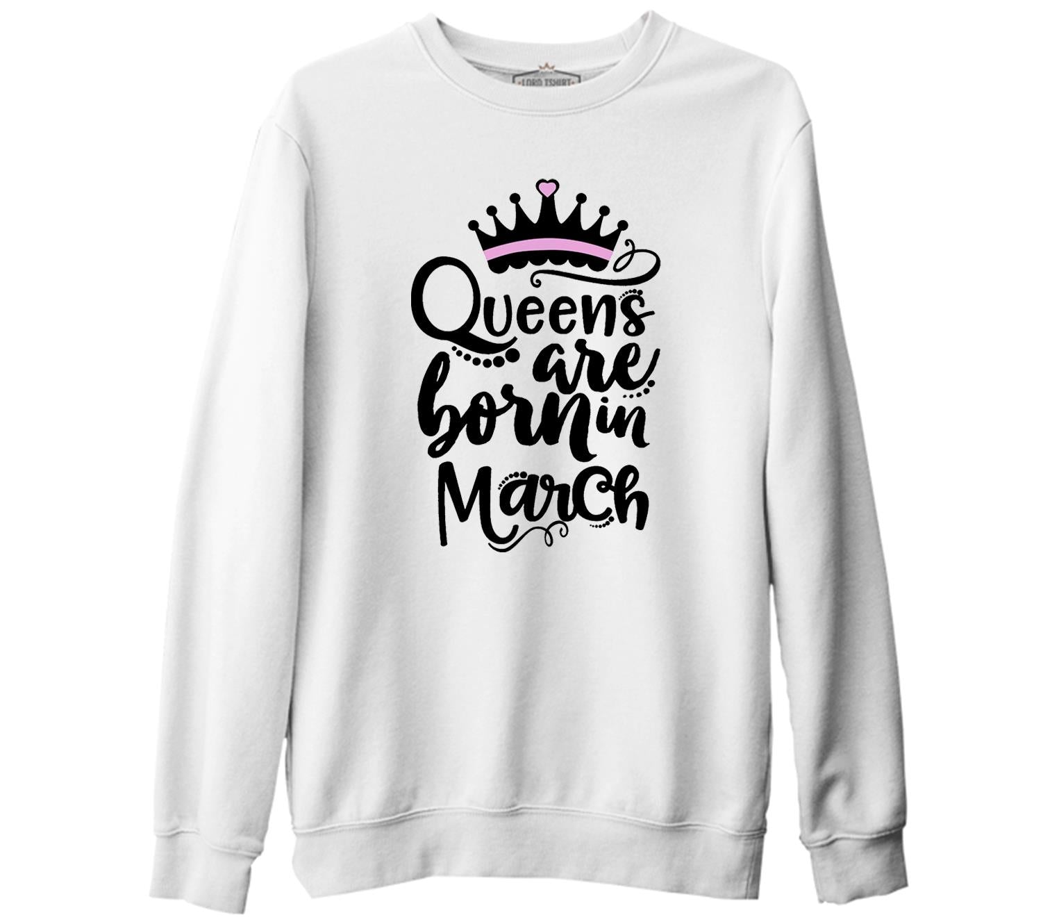 Burç - Queens Born in March 1 Beyaz Kalın Sweatshirt