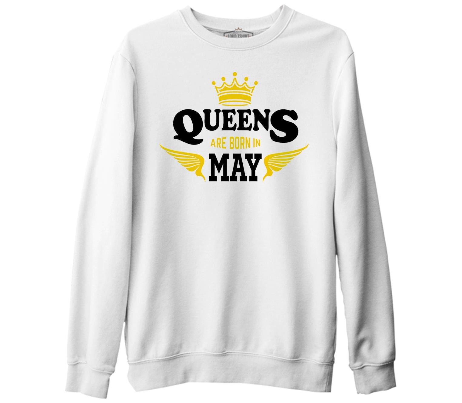 Burç - Queens Born in May Beyaz Kalın Sweatshirt