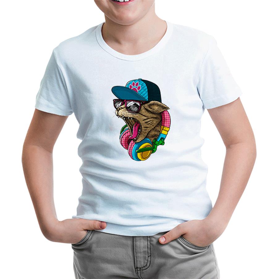 Cat Headphone Müzik Beyaz Çocuk Tshirt