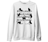 Cats and Notes Beyaz Erkek Kalın Sweatshirt