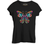 Colorful Butterfly in Geometrical Style Siyah Kadın Tshirt