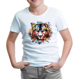 Colorful Tiger Head Beyaz Çocuk Tshirt