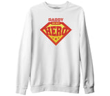Daddy is My Hero Logo Beyaz Erkek Kalın Sweatshirt