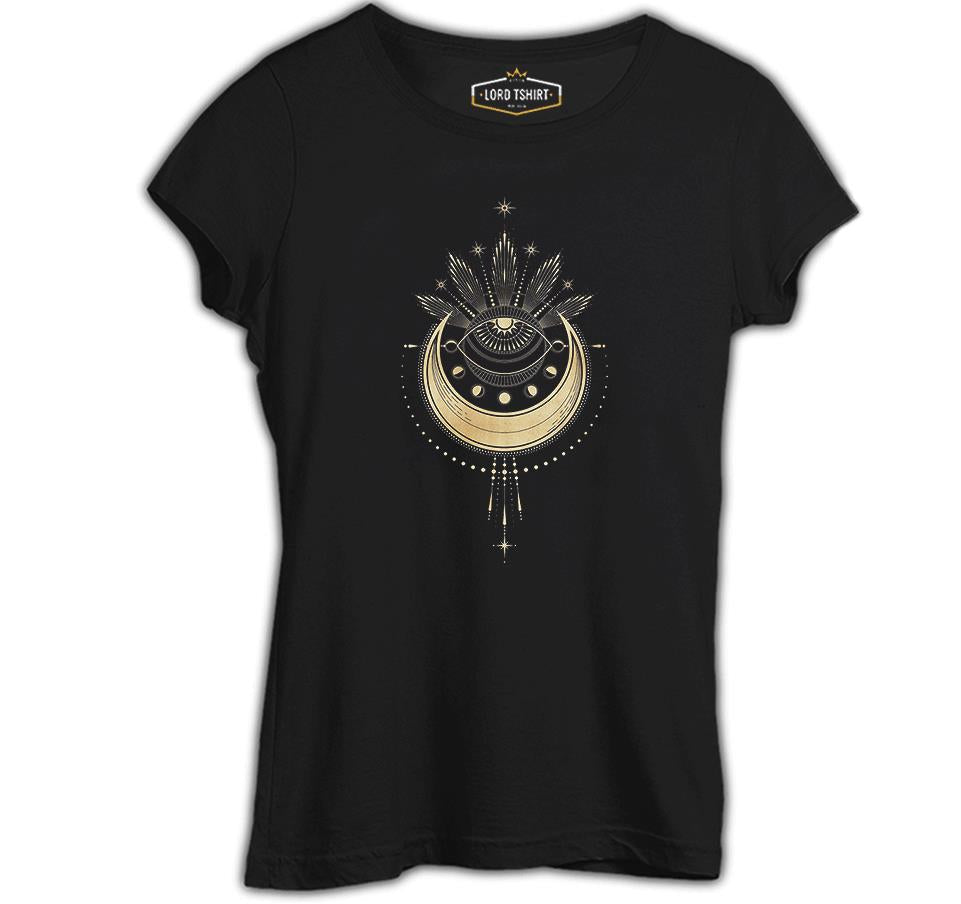 Geometrik - Ay ve Yıldızlar Siyah Kadın Tshirt