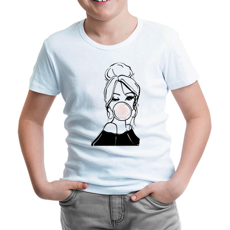 Girl Behind Bubble Gum Beyaz Çocuk Tshirt
