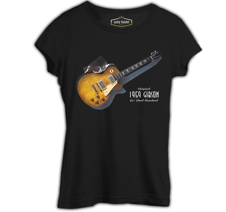 Gitar - Gibson - 1959 Siyah Kadın Tshirt