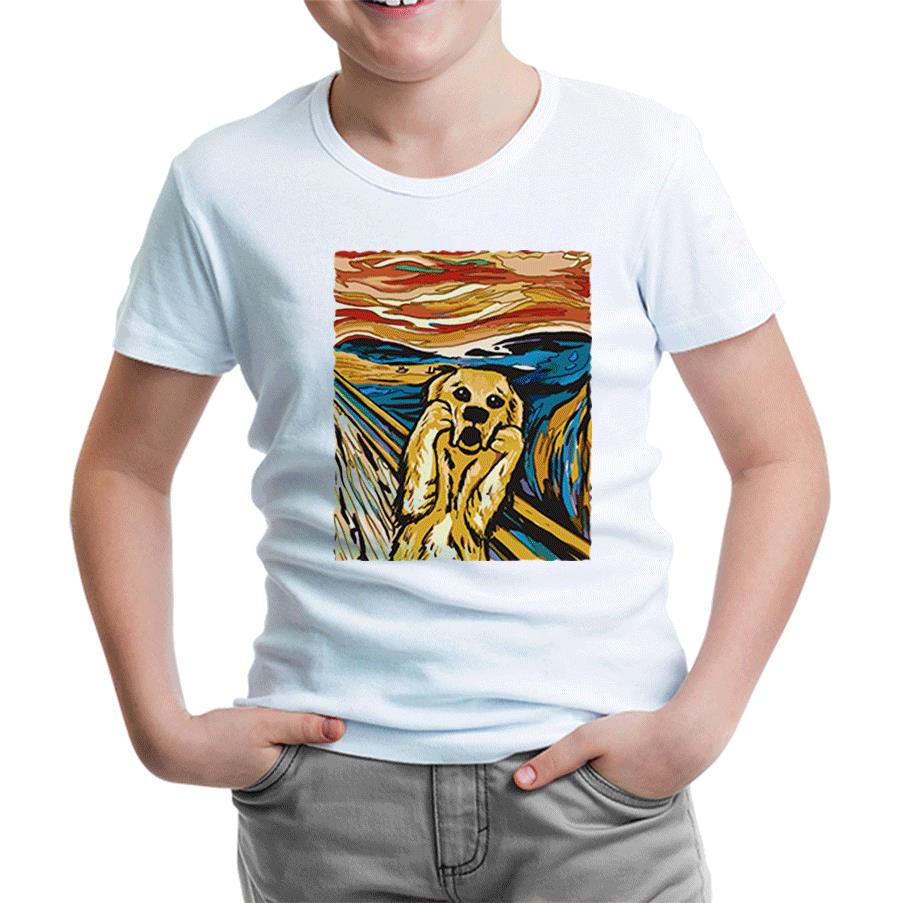 Golden Retriever in Scream Beyaz Çocuk Tshirt