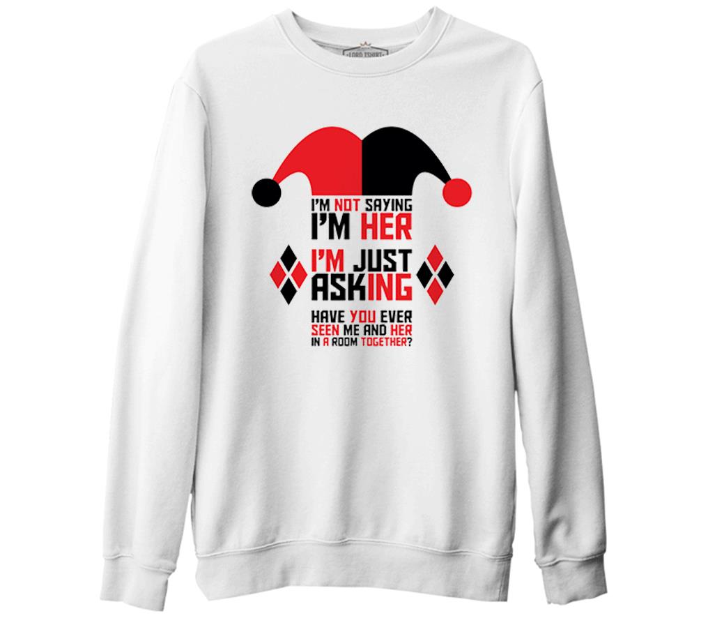 Harley Quinn - I'm Just Asking Beyaz Kalın Sweatshirt