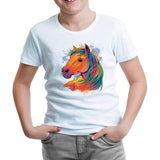 Horse with Colorful Hair Beyaz Çocuk Tshirt