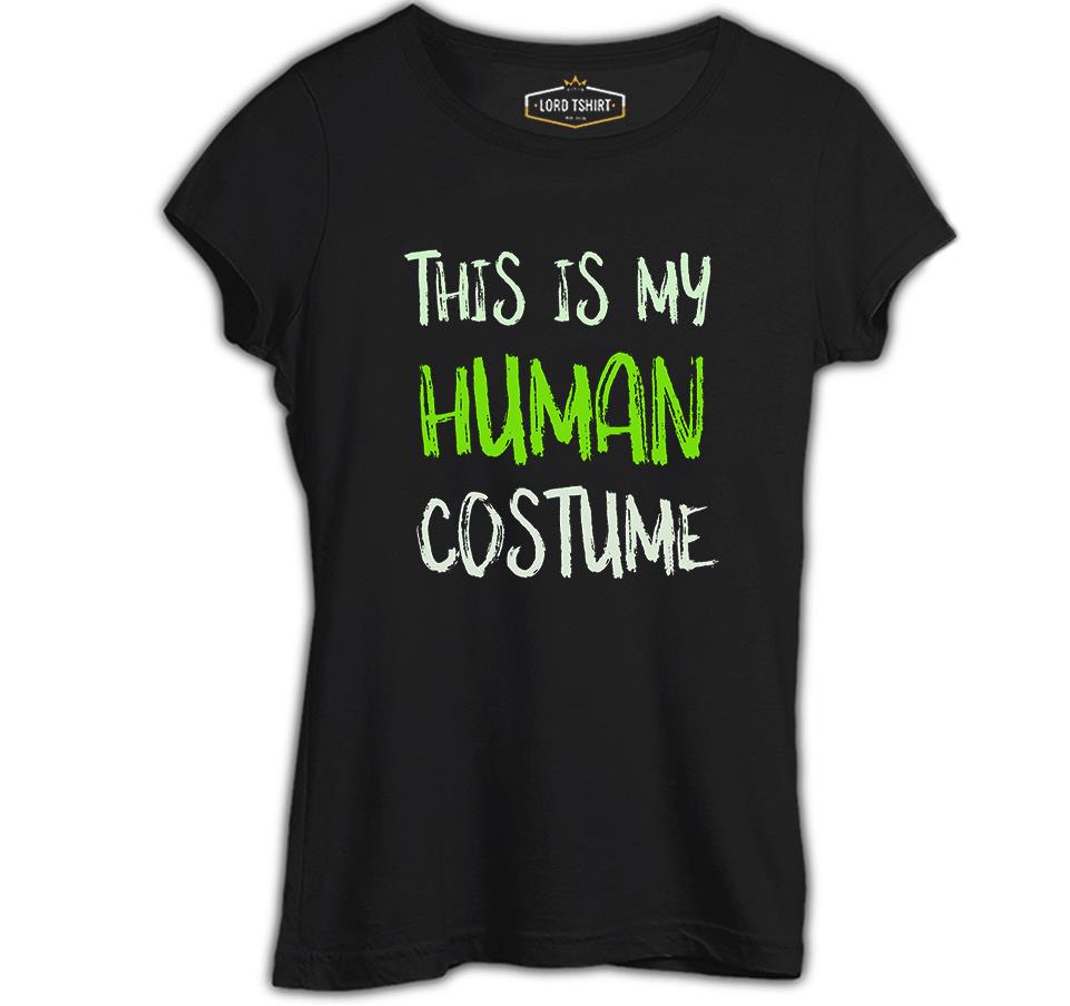 Human Costume Quote Siyah Kadın Tshirt