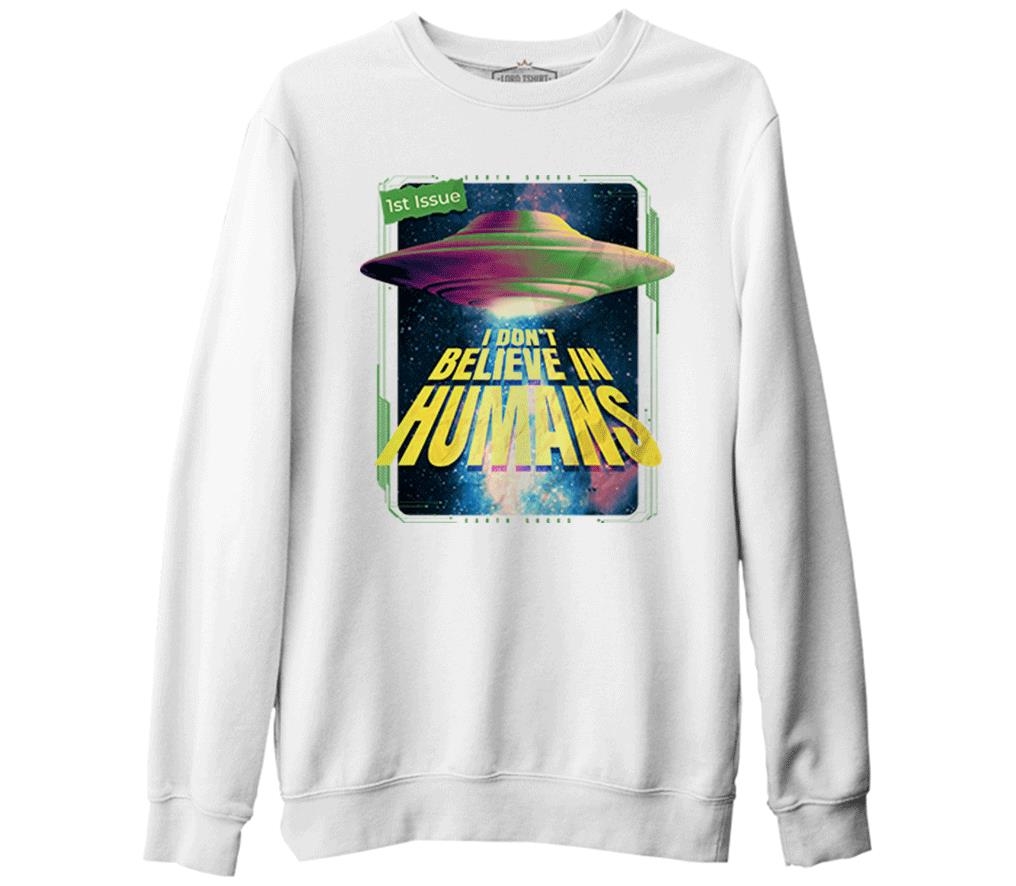 I Don't Believe in Humans Beyaz Erkek Kalın Sweatshirt