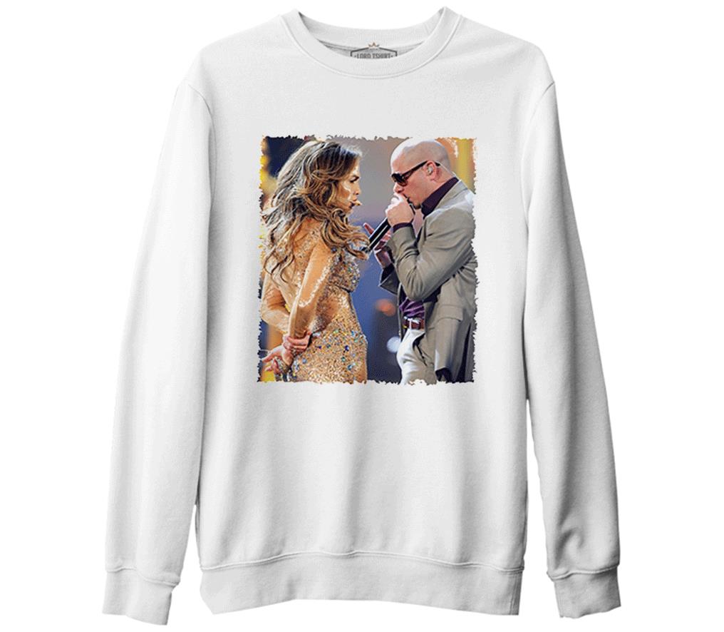 Jennifer Lopez & Pitbull Beyaz Kalın Sweatshirt