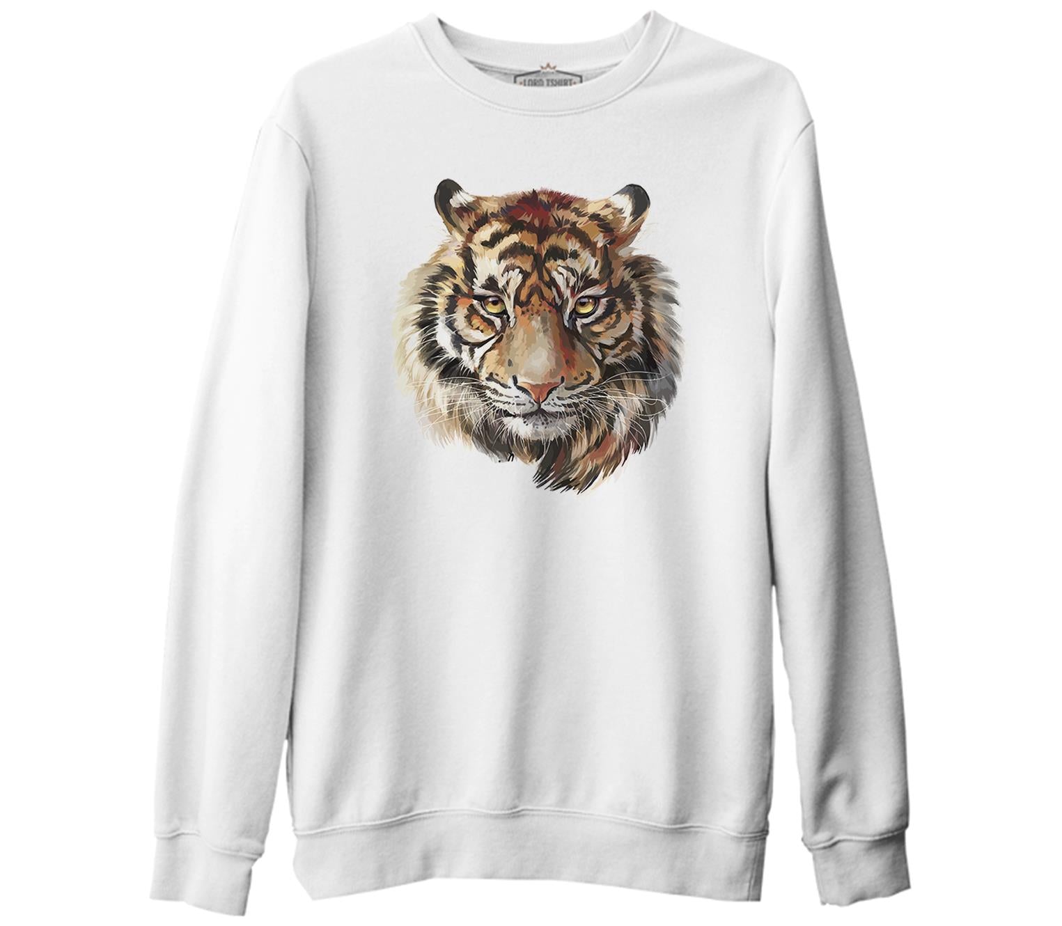 Kaplan - Yüz Beyaz Kalın Sweatshirt