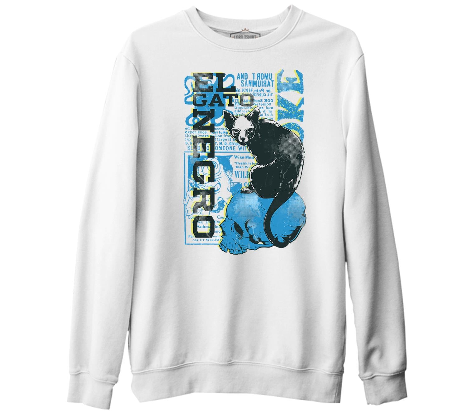 Kara Kedi Beyaz Kalın Sweatshirt