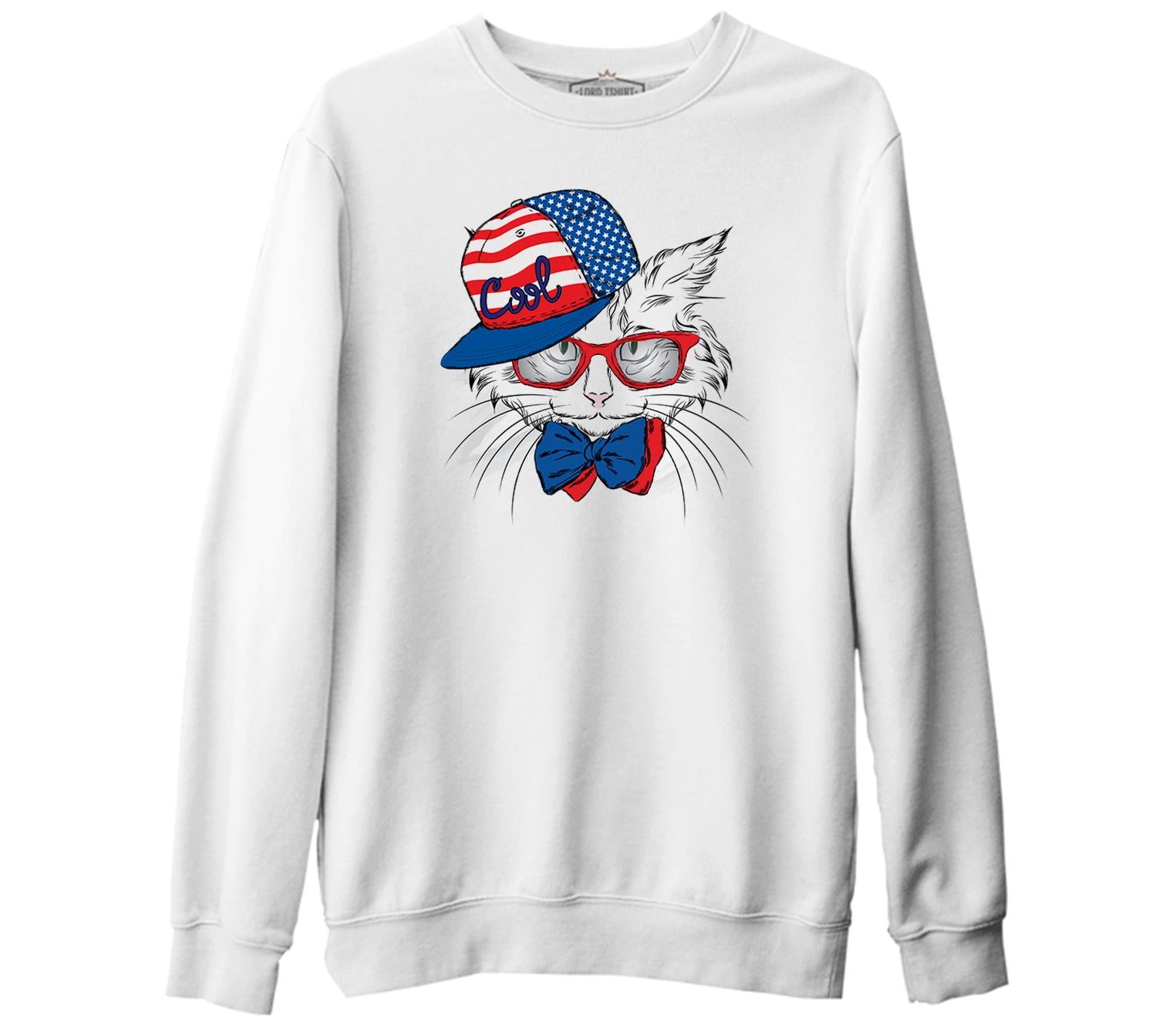 Kedi - Cool Beyaz Kalın Sweatshirt