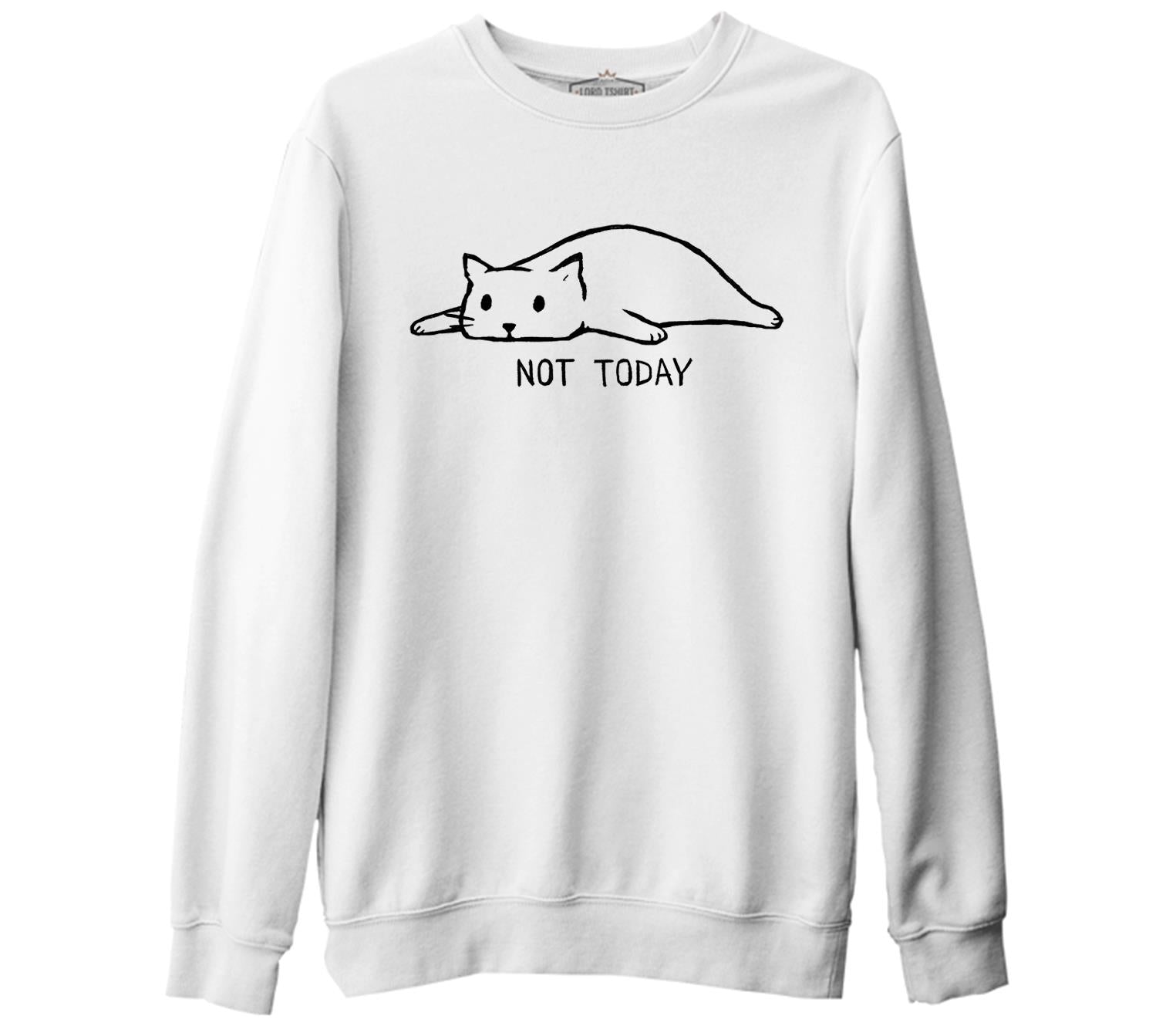 Kedi - Not Today! Beyaz Kalın Sweatshirt