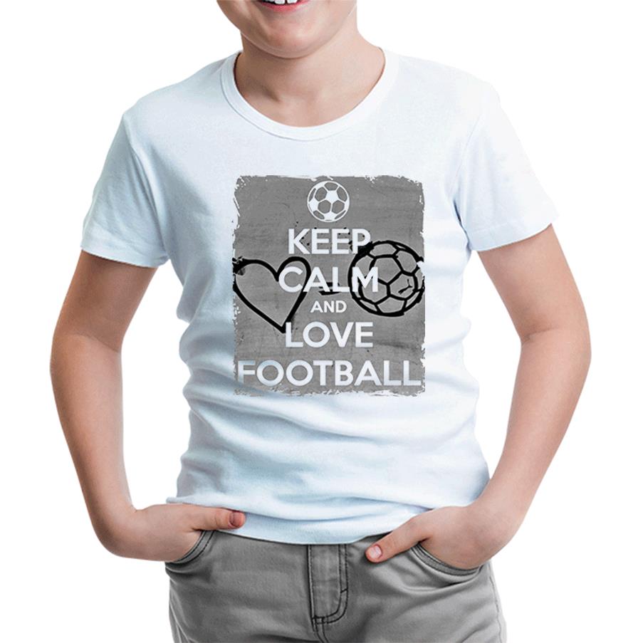 Keep Calm and Love Football Beyaz Çocuk Tshirt