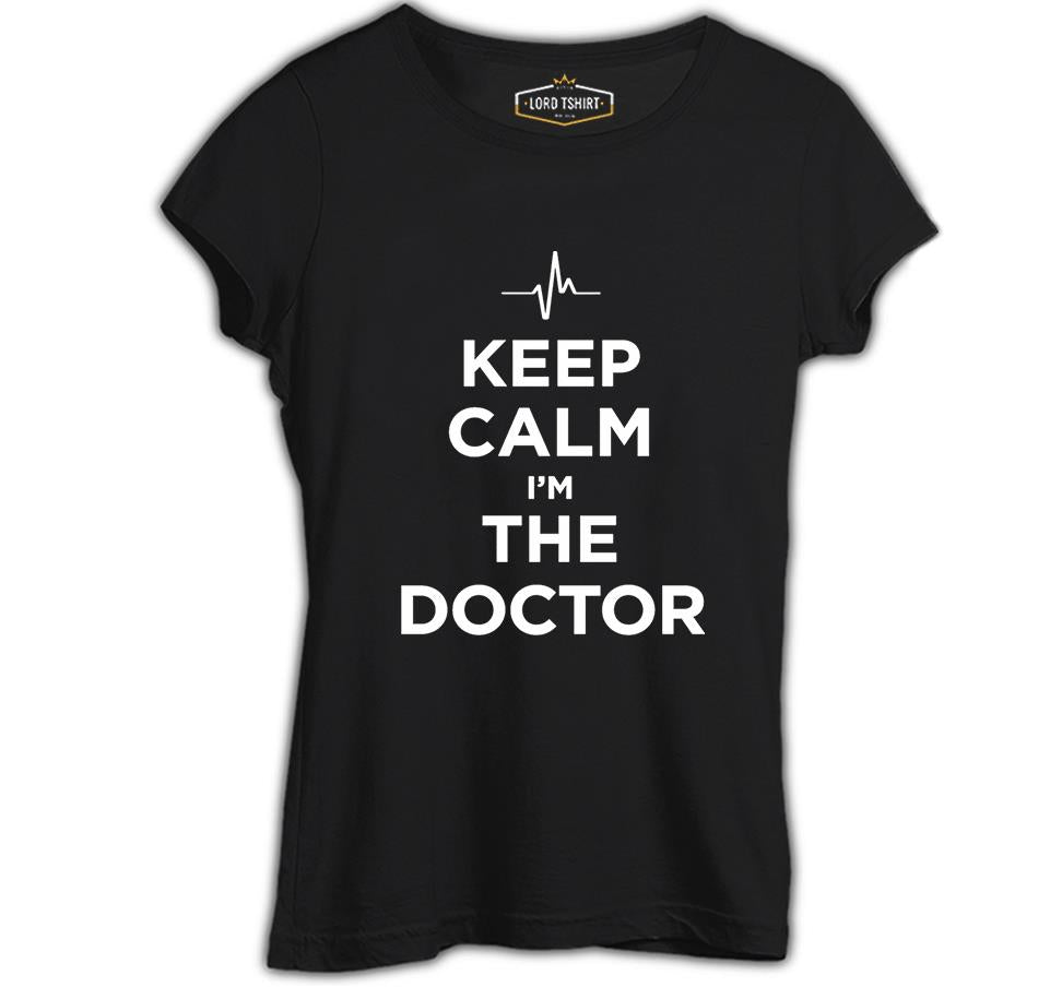 Keep Calm i am the Doctor Siyah Kadın Tshirt