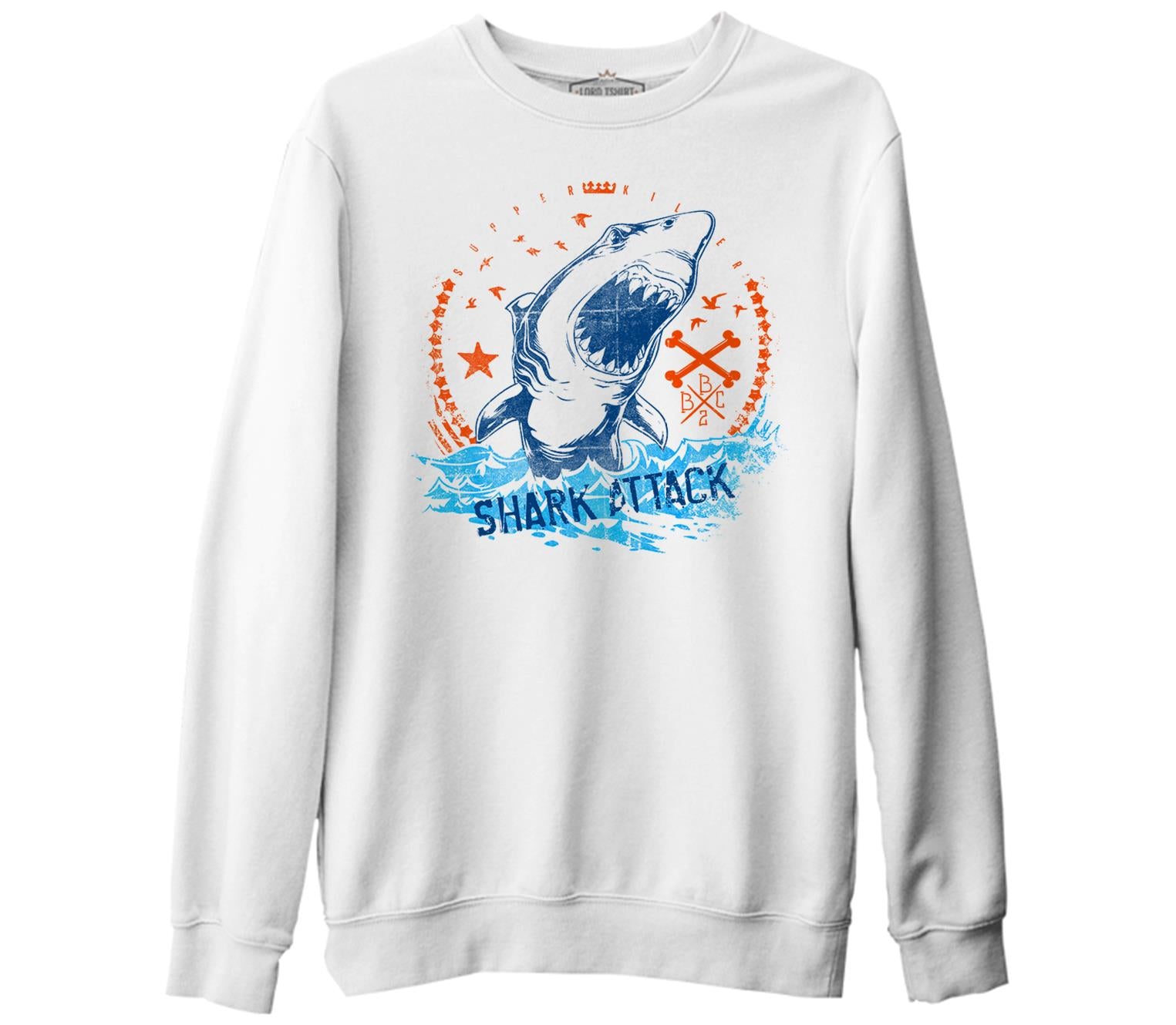 Köpek Balığı - Attack Beyaz Kalın Sweatshirt