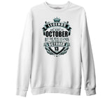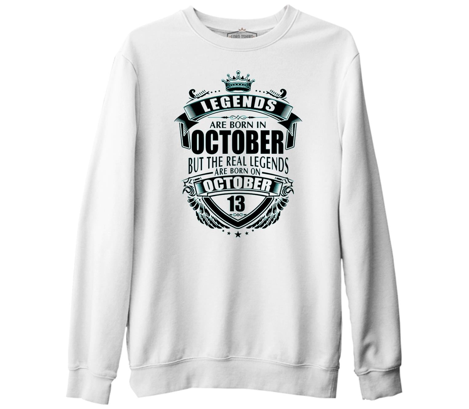 Legends Born on October - Beat Beyaz Kalın Sweatshirt